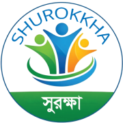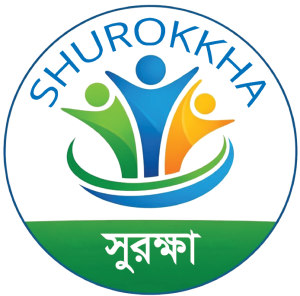 The name “SHUROKKHA” is displayed in English at the top and “সুরক্ষা” in Bangla at the bottom, ensuring cultural relevance and accessibility across diverse populations. The color scheme reflects growth, trust, stability, and humanitarian action.